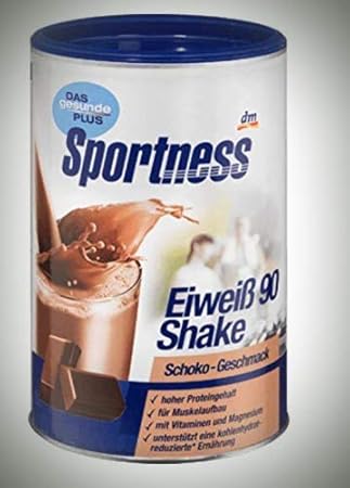 There are 375 calories in 100g (100 g) of DM Sportness Eiweiß 90 Vanille Calorie breakdown 4% fat, 4% carbs, 92% protein. Die Erfahrungen mit dem Sportness Eiweiß 90 (DAS gesunde PLUS) sind durchwachsen Nährwerttechnisch ist das Eiweißpulver der DM Eigenmarke durchaus zu empfehlen Bei der Zusammensetzung der Proteine, der sonstigen Zusätze und beim Geschmack machen es viele reine Sportnahrungsmarken besser Der Preis ist vergleichbar mit wirklich guten Produkten. DM Sportness Eiweiß 90 gibt es in verschiedenen Ausführungen Der Sportness Eiweiß 90 Drink der Marke DM findet sich in den Drogerieregalen in verschiedenen Verpackungsgrößen Wer den neutralen Geschmack bevorzugt, kann hier eine 300 Gramm Dose des Proteinshakes kaufen.
