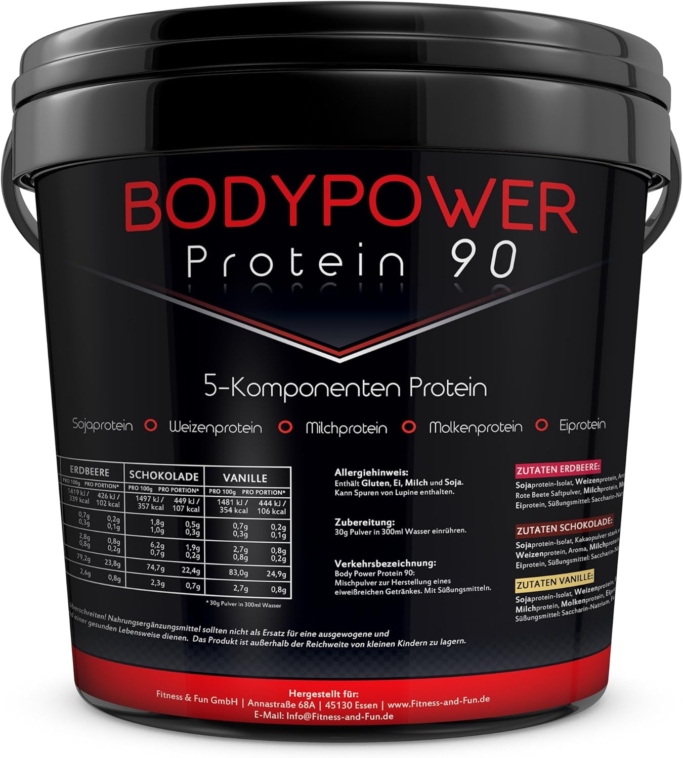 Body Power Protein 90 5kg Eimer 5k Mehrkomponenten Eiweiss 5000g Schoko Amazon De Drogerie Korperpflege
