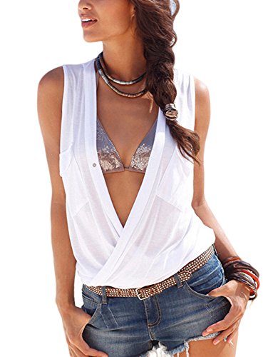 Beiersi Damen Armellos Tshirt Sexy Tiefer V Ausschnitt Tank Top Sommer Halter Geraffte Armellose Bluse X Large Weiss Jetzt Unschlagbar Gunstig Shopping24 De