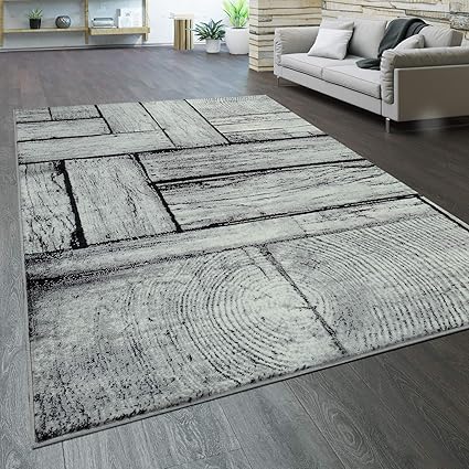 Paco Home Designer Wohnzimmer Teppich Modern Holz Optik Rustikal Grau Schwarz Klingel