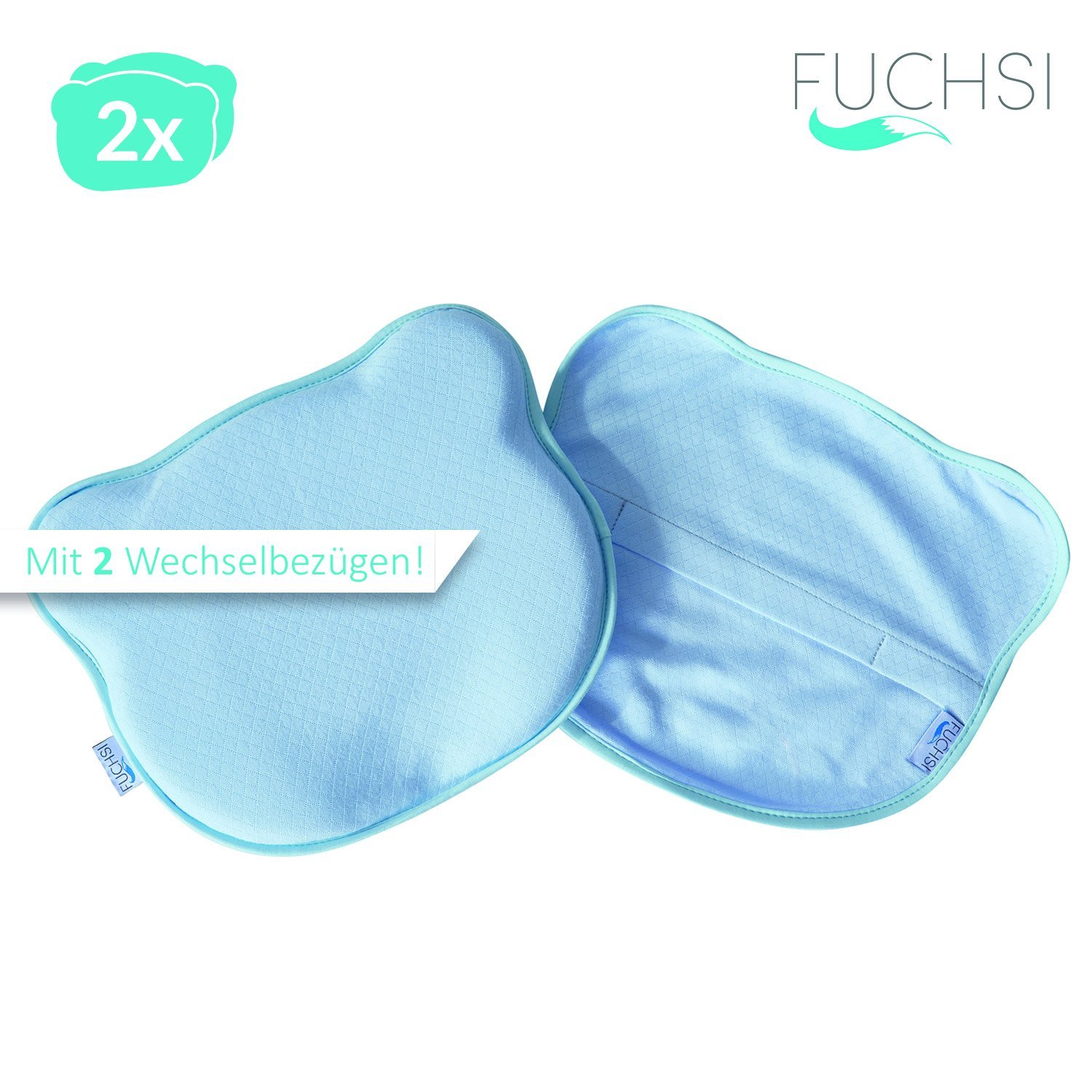 Fuchsi Babykissen Gegen Plattkopf 2x Baumwolle Bezuge Anti Erstickungslocher Memory Schaum Mit Mulde Kopfkissen Fur Babys Und Neugeborene Gegen Kopfverformung Plagiozephalie Blau Endalwainna