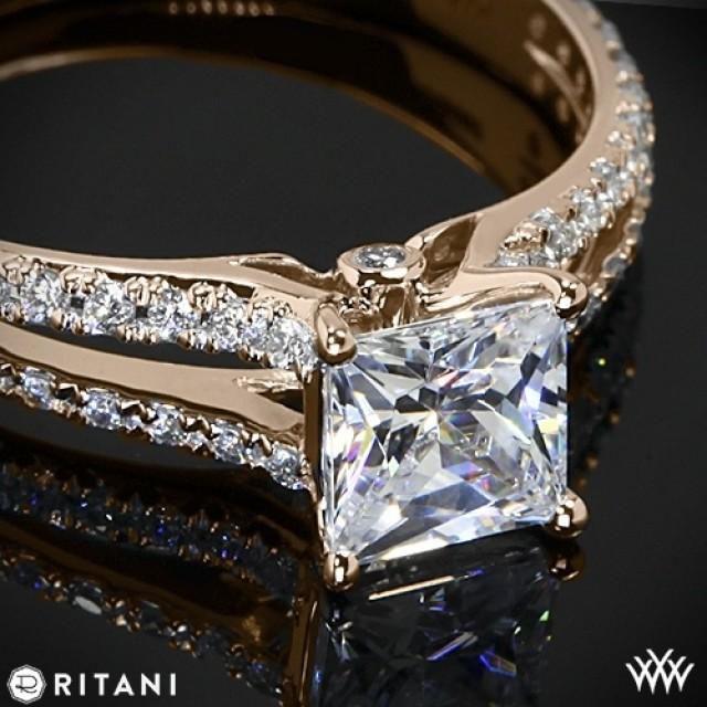 18k Rose Gold Ritani Double French Set Diamond V Engagement Ring For Princess Cut Diamonds Weddbook