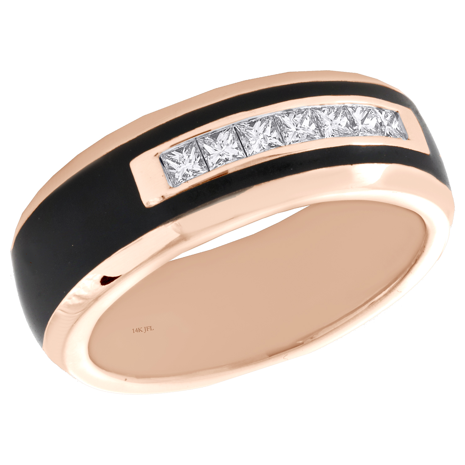 14k Rose Gold Princess Cut Black Enamel Wedding Band 8 25mm Mens Ring 1 2 Ct Ebay