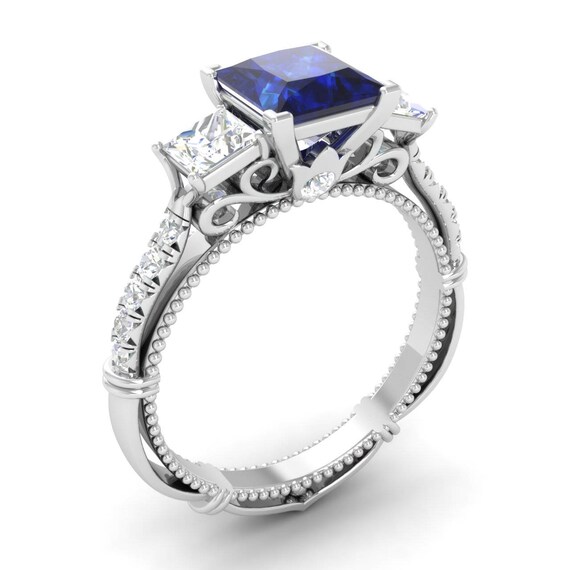 Blue Sapphire Ring 14k White Gold Princess Cut Sapphire Etsy