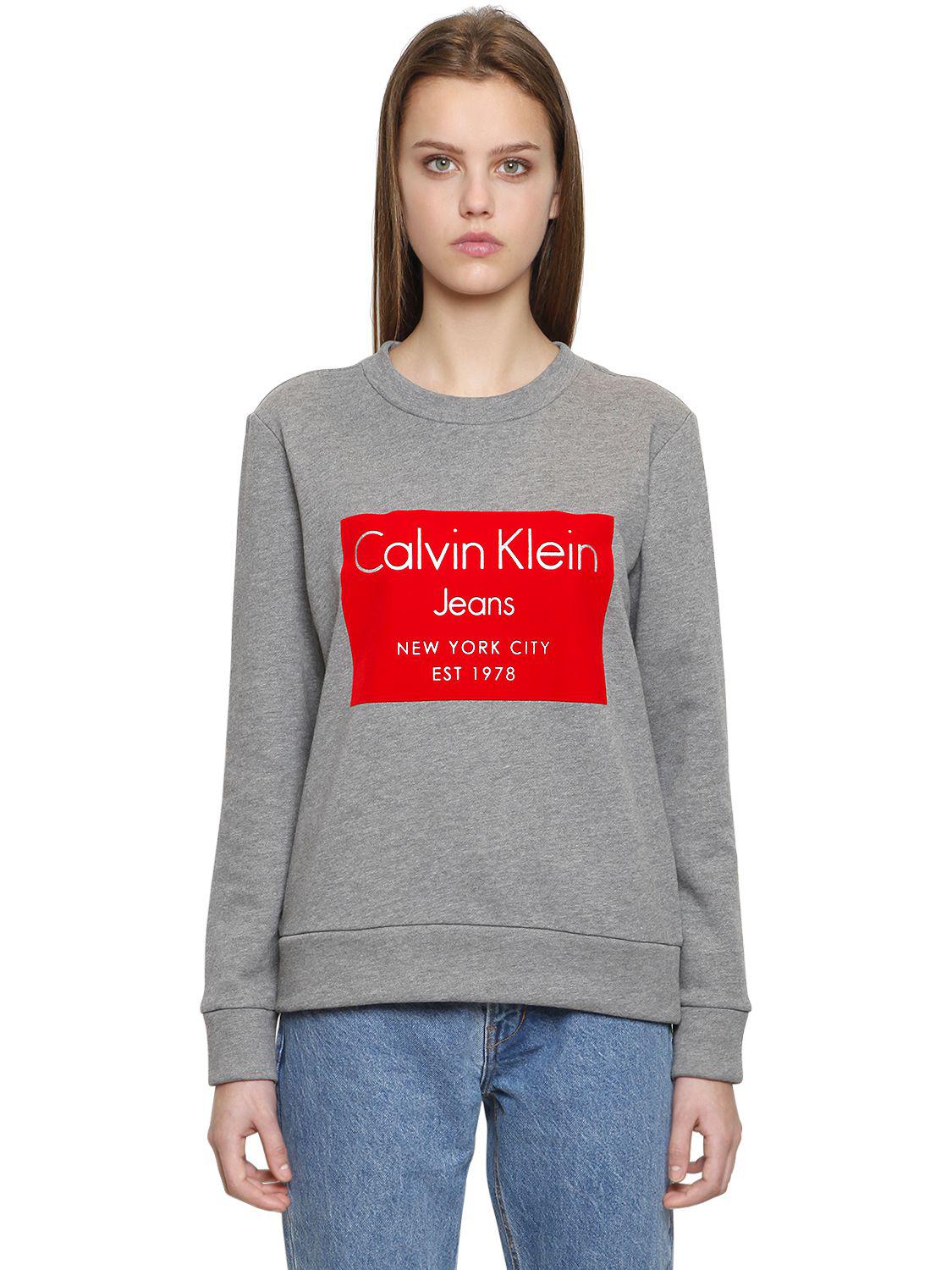 Calvin Klein Hansi Flocked Print Cotton Sweatshirt In Grey Gray Lyst