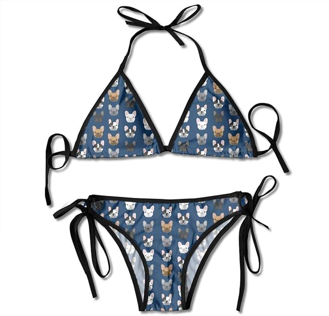 Sunny R Damen Bikini Set Franzosische Bulldogge Marineblau Zweiteiliger Badeanzug Mit Bandage Halfter Badeanzuge Amazon De Bekleidung