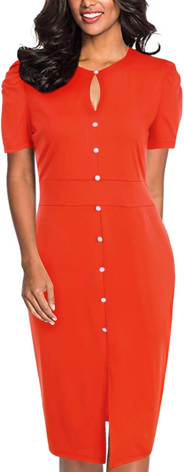 Kleider Abyoxi Damen Elegant Knopft Bodycon Etuikleider Bleistiftkleid Stretch Knielang Split Business Kleider Bekleidung Fbotion Com Br