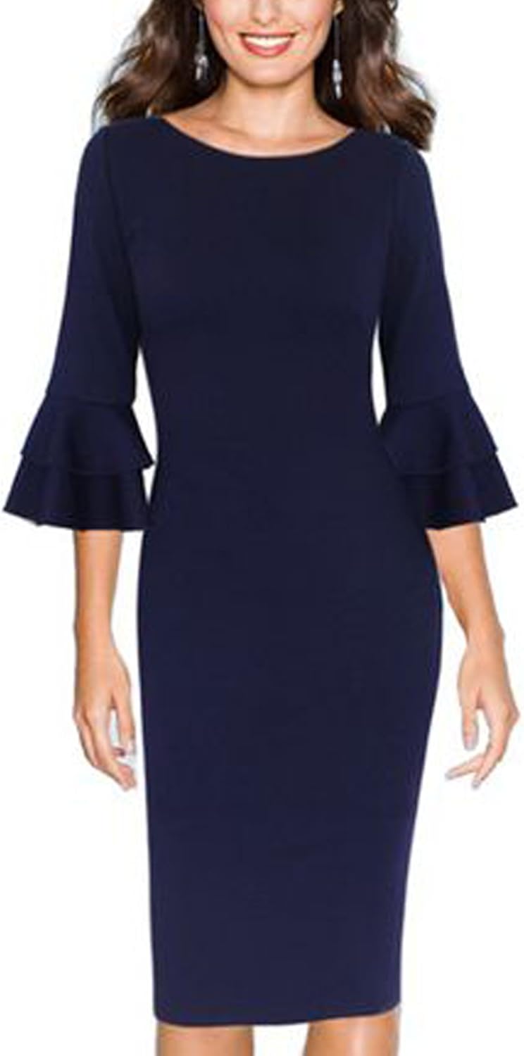 Wower Damen Elegant Etuikleider Festliche Abendkleider Cocktailkleid Knielang Business Kleider 3 4 Armel Bodycon Bleistift Lassig Business Kleid Damen Business