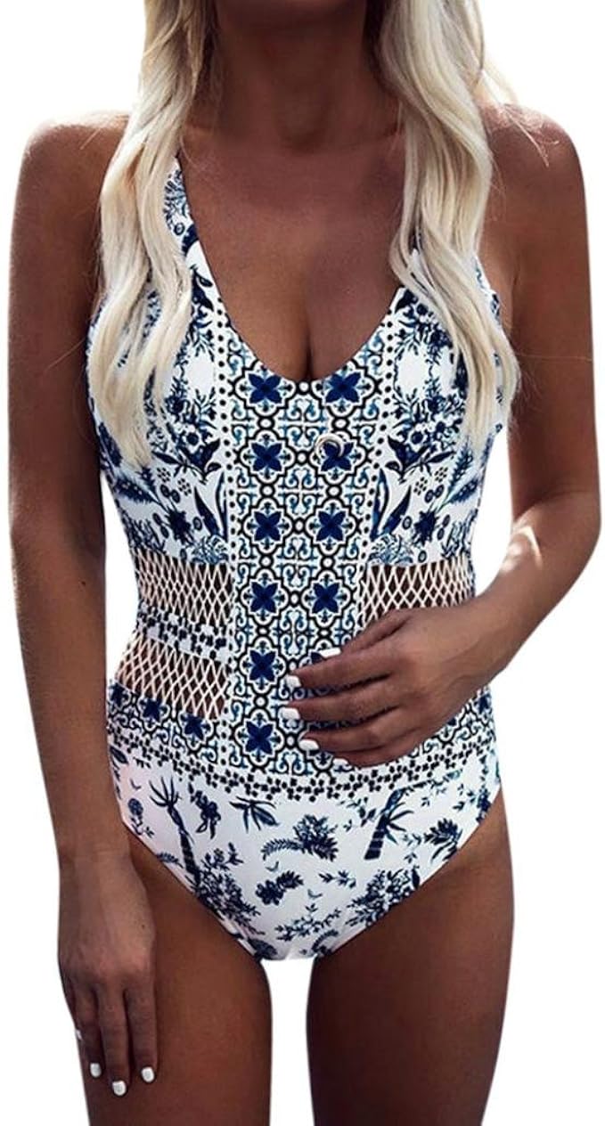 Longra Damen Elegante Badeanzug Badekleid Tankini Schwimmanzug Mit Ethno Druck Damen Tief V Ausschnitt Bugel Badeanzug Schulterriemen Einteiler Push Up Badanzuge Weiss Amazon De Bekleidung