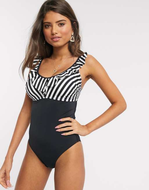 Pour Moi Fuller Bust Capri Bugel Badeanzug Mit Ruschen Und Schwarz Weissem Streifenmuster Evesham Nj