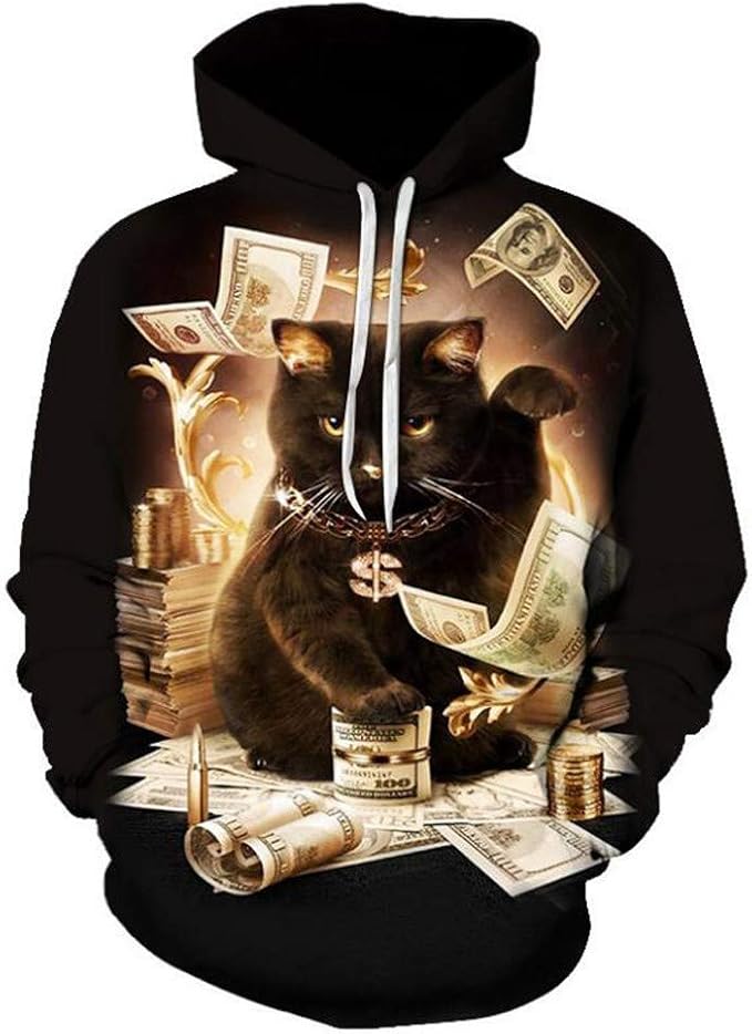 Akaidae Herren Kapuzenpullover Modisch Schwarze Katze Mit Banknoten 3d Druck Damenbindung Langarmshirt Amazon De Bekleidung