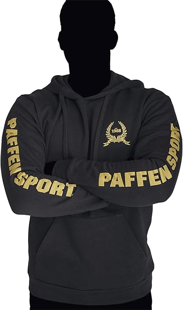 Paffen Sport Anniversary Hoodie Schwarzer Kapuzenpullover Cap Sweatshirt Mit Goldenem Druck Auf Beiden Armeln Fur Damen Und Herren Amazon De Bekleidung