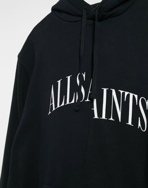 Allsaints Dropout Schwarze Kapuzenpullover Mit Geteiltem Logo Asos
