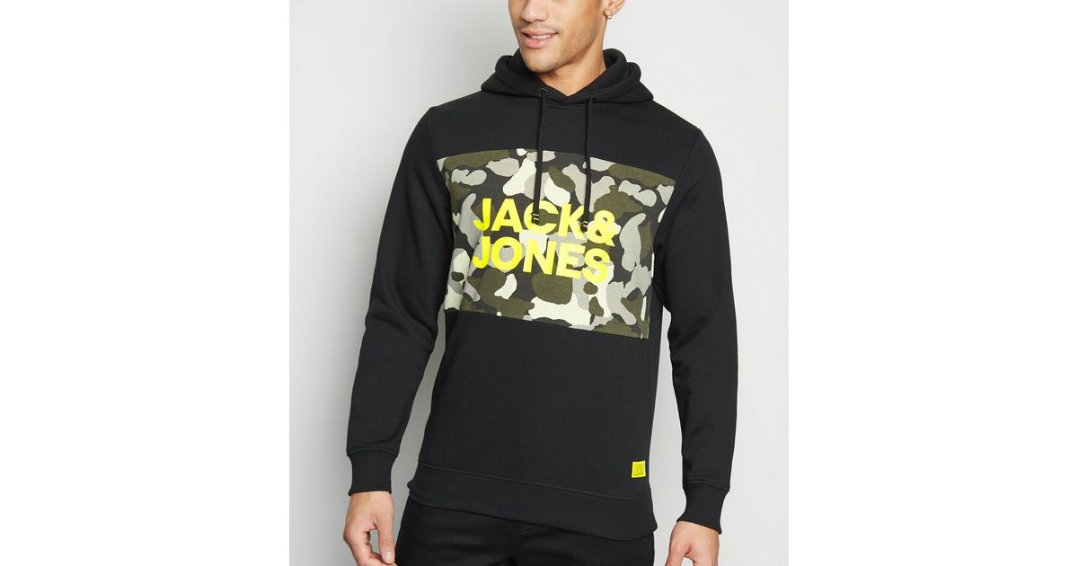 Jack Jones Schwarzer Kapuzenpullover Mit Kastenformigem Camouflage Muster New Look