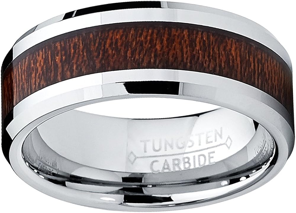 Wolfram Ring Mit Echt Holz Einlage 8 Mm Herren Schmuck Farbe Silber Braun Wr07 Ebay