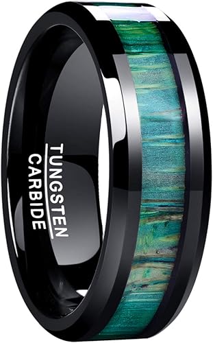 Nuncad Herren Damen Unisex Ring Aus Wolfram Schwarz Mit Gruner Holz Einlage 8mm Grosse 54 67 14 27 Amazon De Schmuck