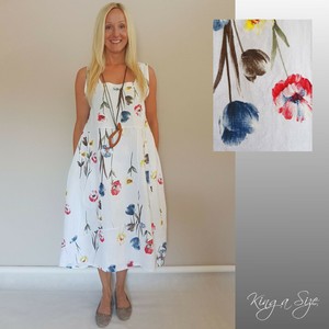 Sommer Leinen Kleid Lagenlook Plus Size Mode Mohn Blumen Gr 54 Weiss Ebay