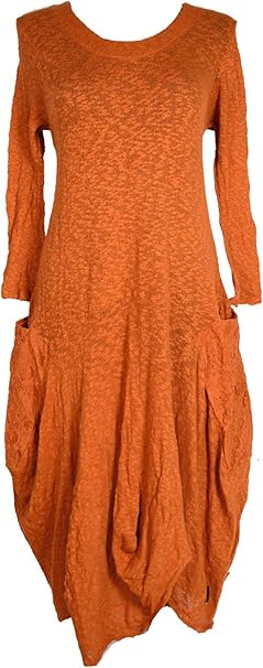 Lacosa Leinenkleid Ballonkleid Kleid Lagenlook Kurzarm Uni Orange Annette Winchester