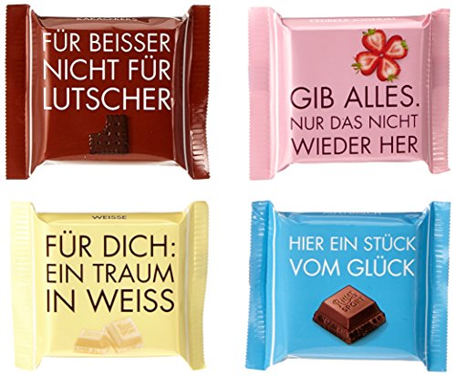 Ritter sport mini spruche. Sämtliche in der folgenden Liste vorgestellten Ritter Sport Mini Bunter Mix sind direkt bei amazonde erhältlich und sofort vor Ihrer Haustür. Mini Schokosprüche Öfter mal sprachlos?. Artikelbezeichnung "Ritter Sport mini Schokosprüche 150g" Sie denken in Sachen mini Schokosprüche wurde schon alles gesagt?.