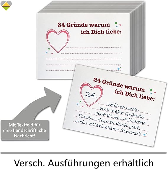 Cute Head Diy Adventskalender Set Zum Basteln 24 Grunde Warum Ich Dich Liebe Herz 24 Karten Zum Beschriften 74 X 105 Mm Rot Akset 24g Nk 01 R Amazon De Kuche Haushalt