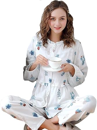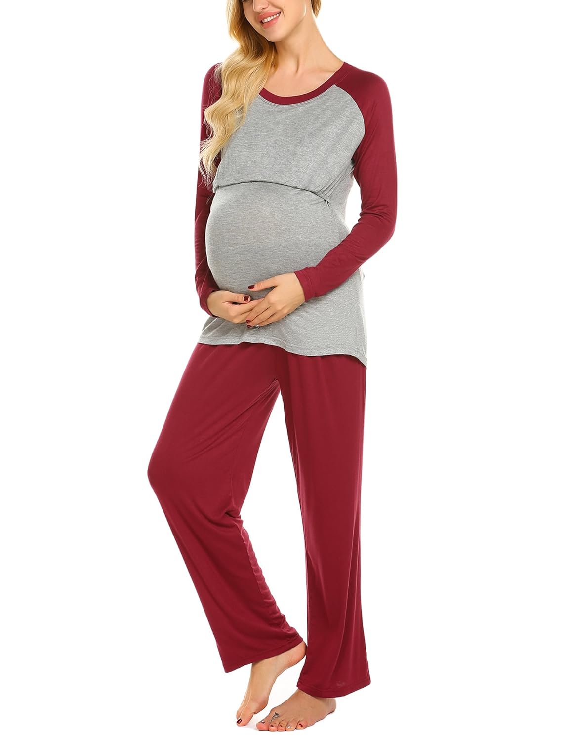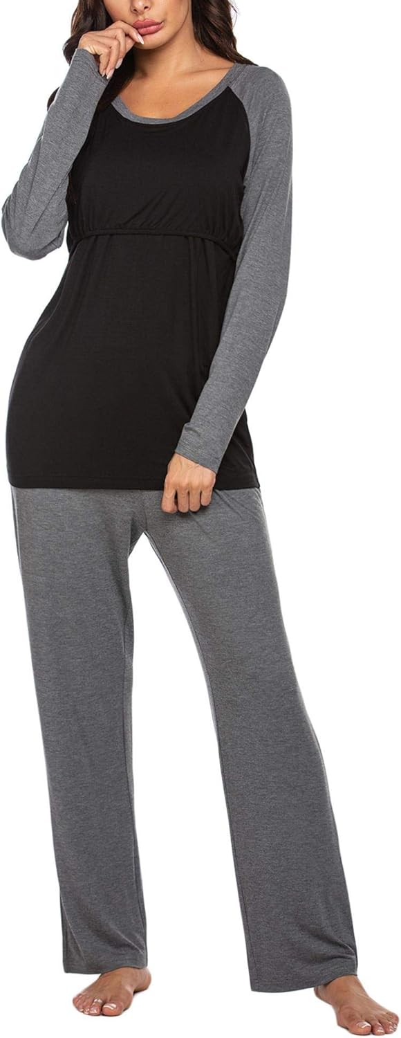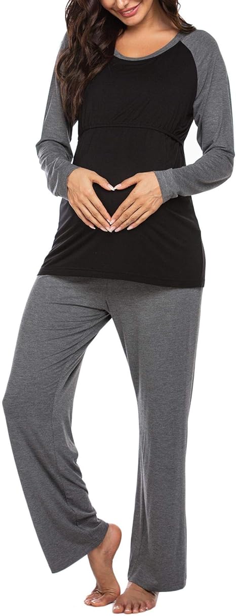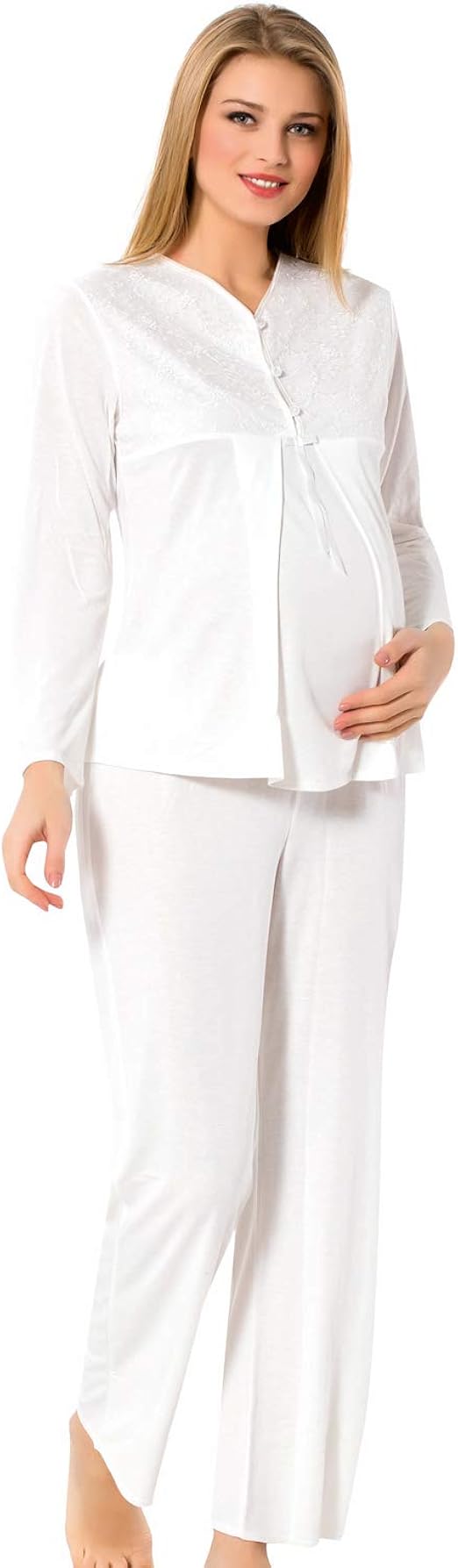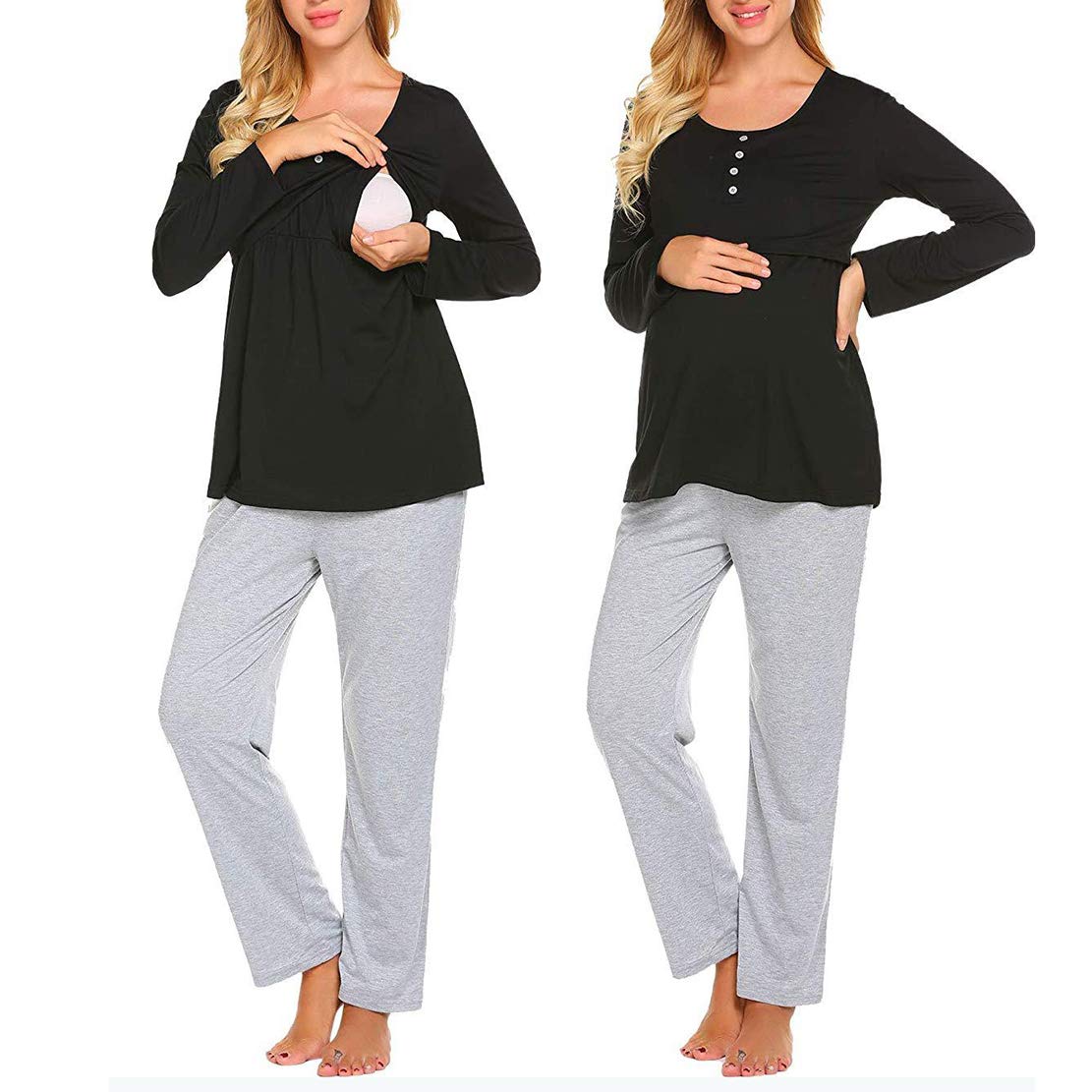 Maxmoda Damen Stillpyjama Stillnachthemd Fur Schwangere Langarm Zweiteiliger Umstandsmode Stillschlafanzug Umst Schwangerschaftskleidung Pflegebekleidung Anzug