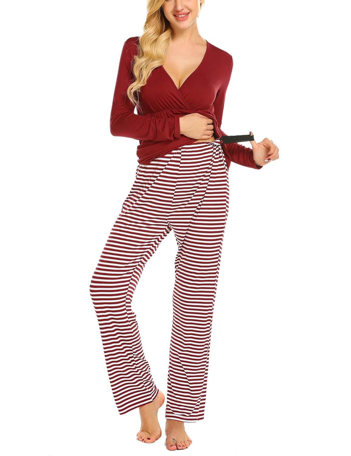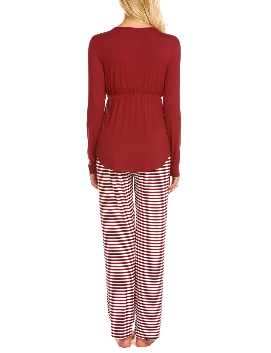 Gestreifter Schlafanzug Fur Damen Lang Langarm Weiches Pyjama Set Mit Stillfunktion 2100 Nachtwasche Fur Schwangerschaft Stillzeit Herzmutter Stillpyjama Umstandspyjama Bekleidung Umstandskleidung