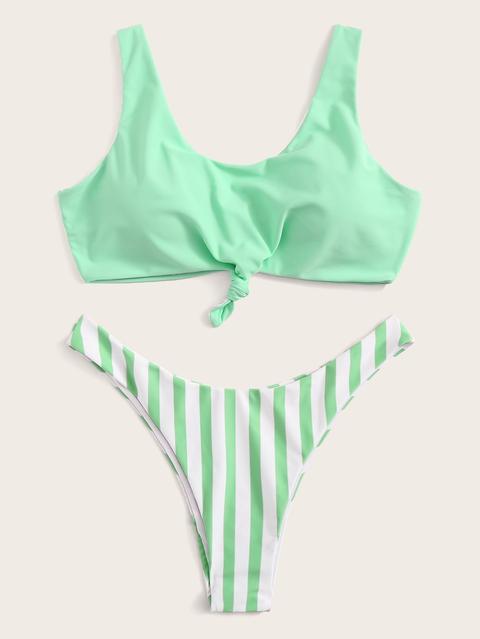Top Mit Knoten Und Bikini Set Mit Hohem Beinschnitt Und Streifen From Romwe On 21 Buttons