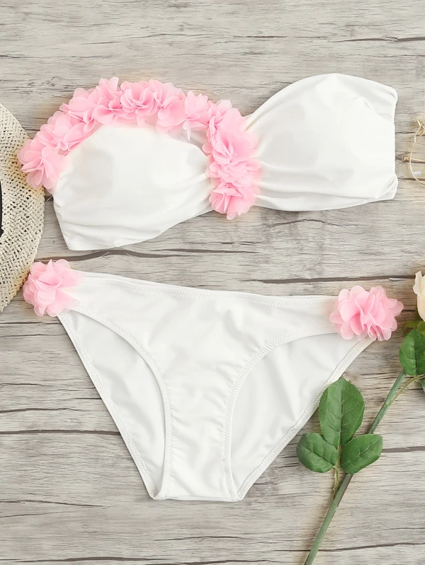 Bandeau Top Flower Applique Bikini Set Romwe Usa