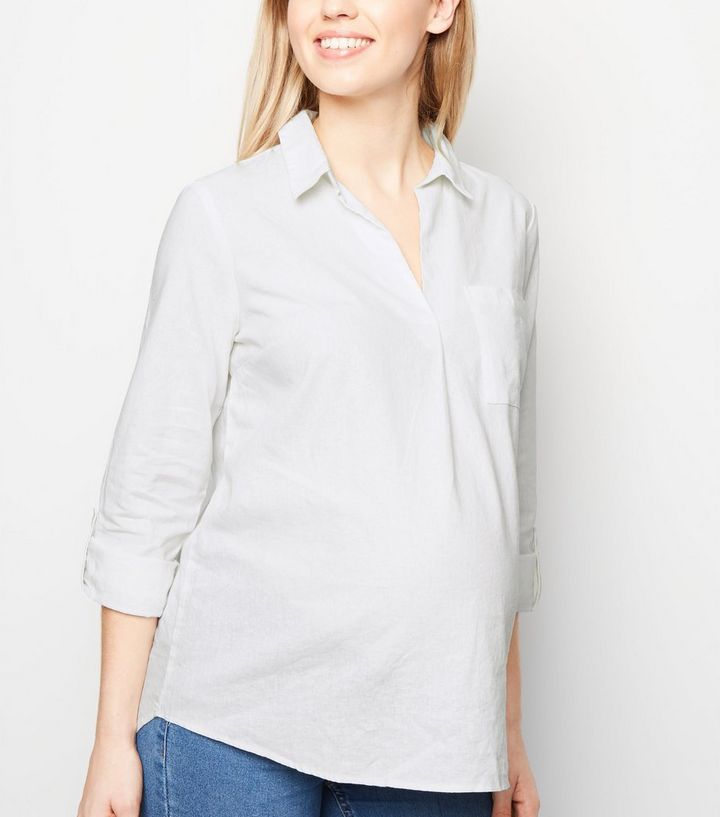 Umstandsmode Weisses Hemd Aus Leinen Mix Zum Uberziehen New Look