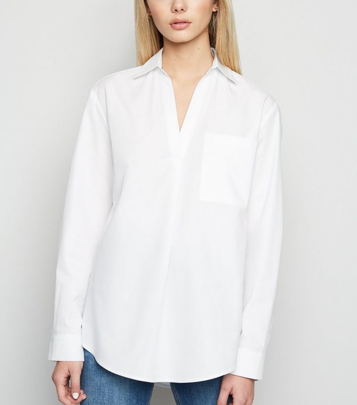 Weisses Hemd Zum Uberziehen Aus Popeline Mit Weitem Kragen New Look