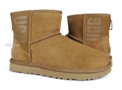 Ugg Classic Mini Ugg Rubber Logo Chestnut Suede Fur Boots Womens Size 7 Nib Ebay