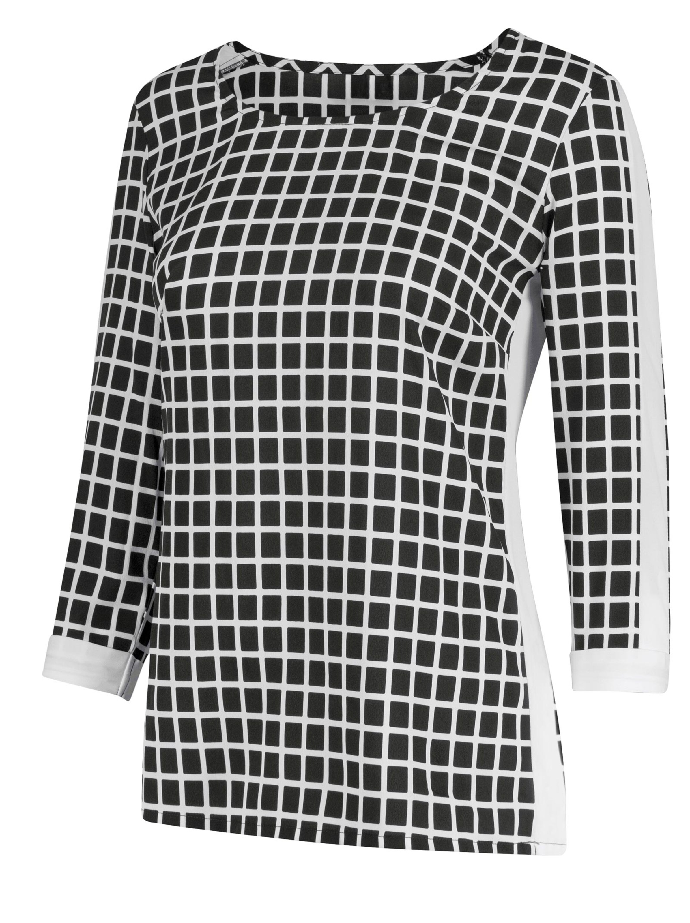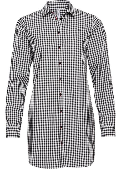 Angesagte Long Bluse Mit Krempelarmeln Und Trendigem Karomuster Schwarz Weiss Kariert