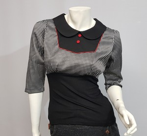Kustenluder Bluse Schwarz Weiss Kariert Und Roten Knopfen Und Bubikragen Gr S M Ebay