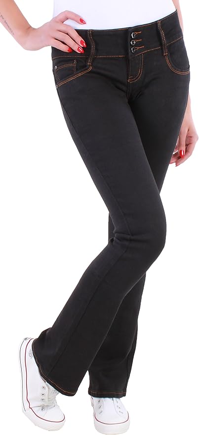 Damen Bootcut Jeans Hose Huftjeans Hufthose Schlaghose Ausgestellt Schwarz Damenjeans Stretch
