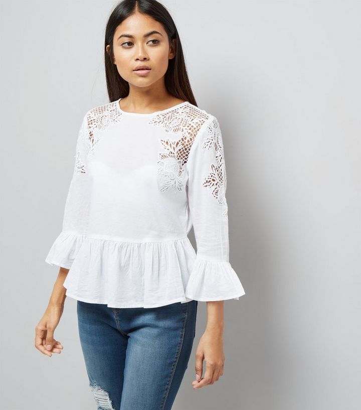 Petite Weisses Top Mit Cut Outs Spitze Und Ruschen New Look