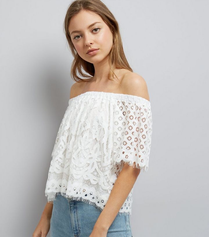 Weisses Top Aus Spitze Mit Bardot Ausschnitt New Look