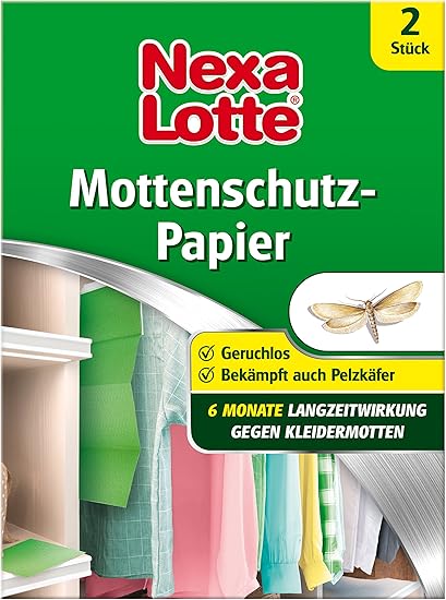 Nexa Lotte Mottenschutzpapier Schutzt Effektiv Bis Zu 6 Monate Vor Kleidermotten Und Pelzkaferlarven 2 Streifen Amazon De Garten