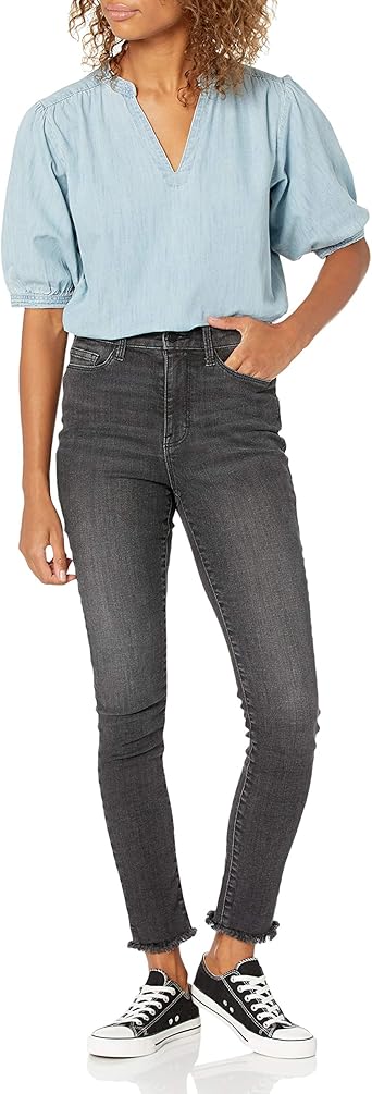 Amazon Com Amazon Brand Goodthreads Women S Relaxed Fit Denim Puff Sleeve V Neck Shirt Clothing