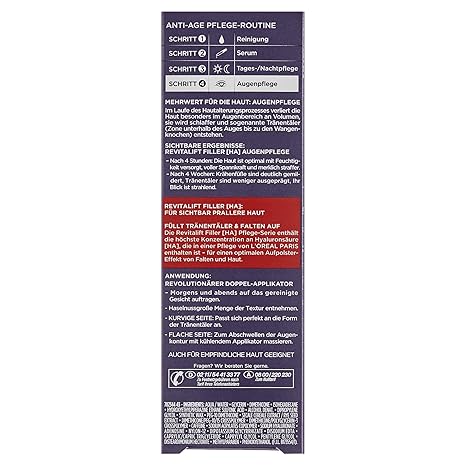 L'Oréal Paris Hyaluron Augenpflege, Revitalift Filler, AntiAging Augencreme für das Gesicht, AntiFalten und Volumen, Mit Hyaluronsäure, Vitamin CG & E, 30 ml L'Oreal Paris Augencreme Revitalift Laser X3 Anti Aging Augenpflege 15ml In den Einkaufswagen In den Einkaufswagen In den Einkaufswagen. Inhaltsverzeichnis 1 SatinNaturel – DER SIEGER * BIO Hyaluronsäure Serum Hochkonzentriert 11 Neu & OVP Eucerin Hyaluron Filler Augencreme 15ml silber laut EBAY;. Find The Best Makeup, Hair Care, Hairstyling, Hair Coloring, Skincare & AntiAging Products On The L'Oréal Paris Homepage Howto videos and makeup tutorials.