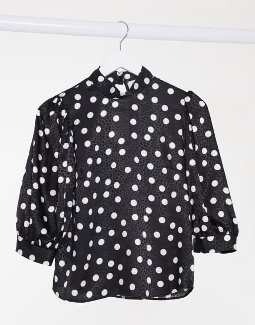 Closet London Hochgeschlossene Bluse Mit Ballonarmeln In Schwarz Gepunktet Evesham Nj