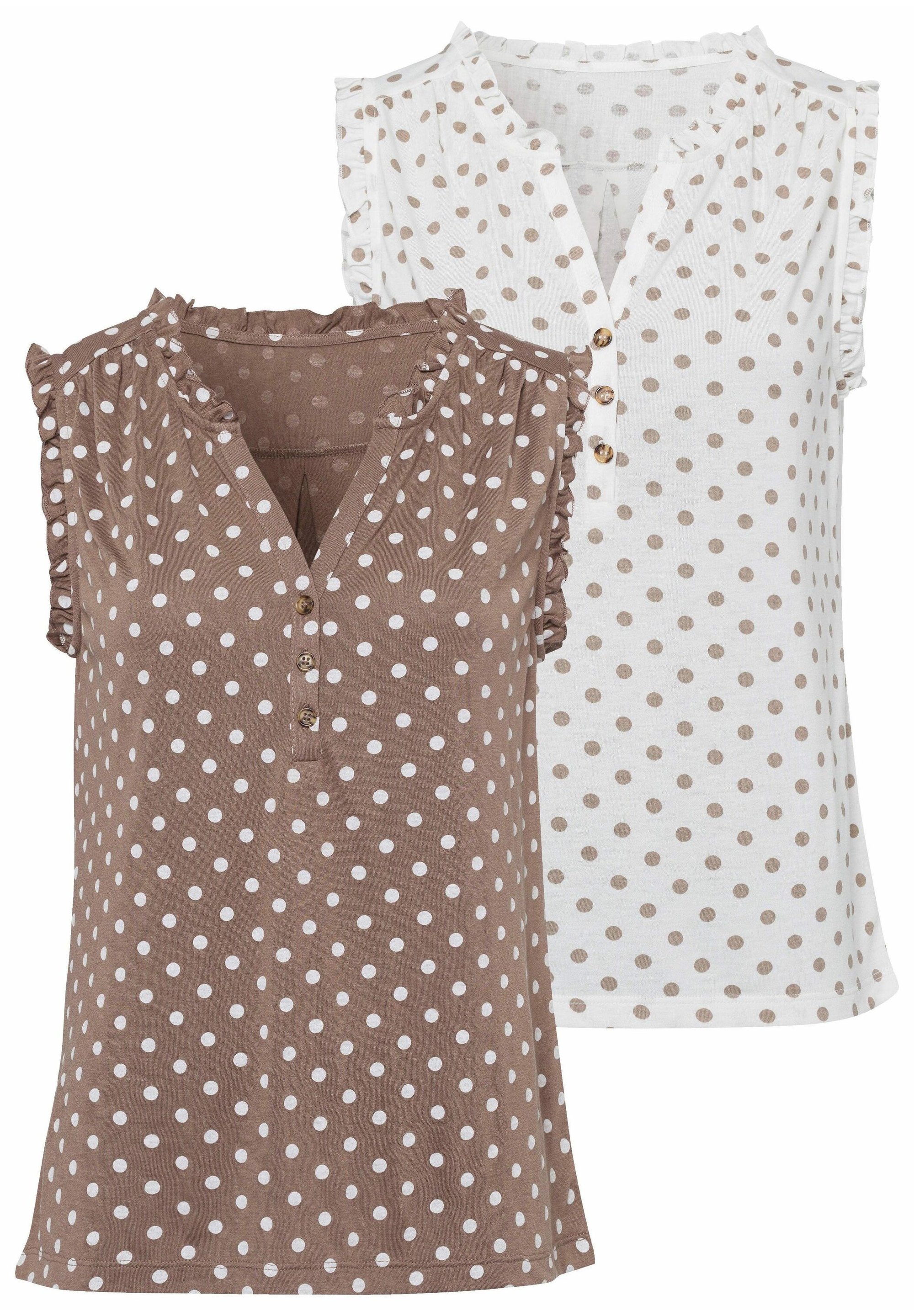 Lascana 2 Pack Bluse Weiss Gepunktet Taupe Gepunktet Weiss Zalando De