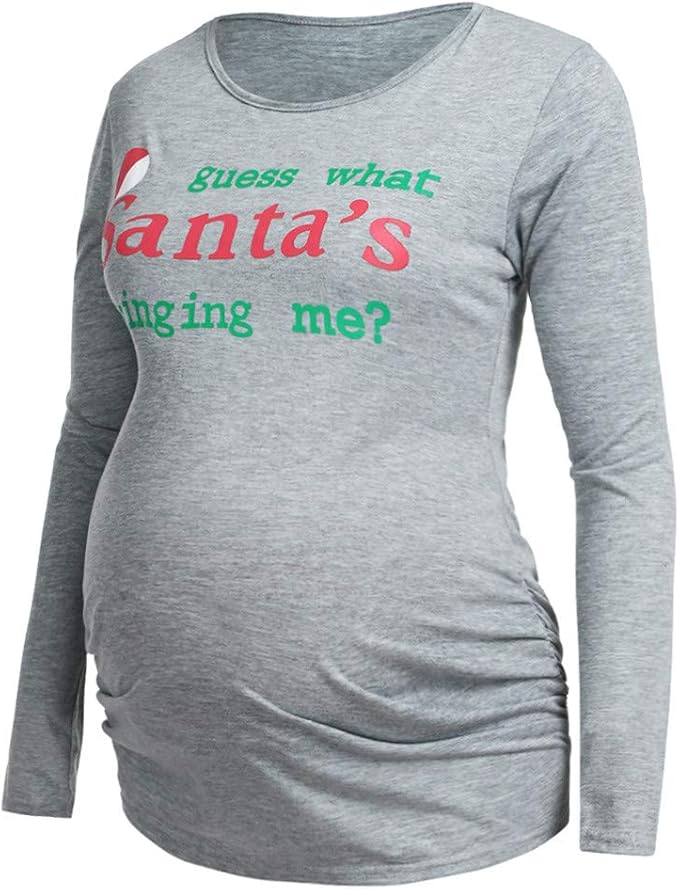 Kunfang Damen T Shirts Cartoon Mutterschaft Tops Tees Lustige Weihnachten Schwangerschaft T Shirts T Shirt Xmas Schwangere Frauen Tees Gr M K150 Amazon De Bekleidung
