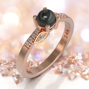 Schwarze Perle Verlobungsring Perle Ehering Rose Gold Etsy
