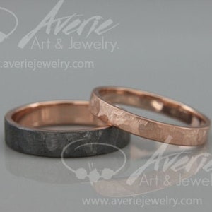 Schwarz Und Hellen 14k Rose Gold Facettierten Trauringe Set Handgefertigte 14 K Schwarz Gold Strukturierte Facettierte Eher Eheringe Trauringe Schwarzes Gold