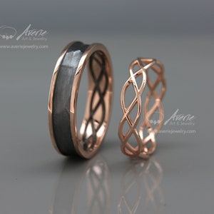 14 K Rose Gold Schwarz Und Hellen Keltische Eheringe Set Handgefertigte 14k Rose Gold Kelti Celtic Wedding Ring Sets Rose Gold Ring Set Wedding Rings Vintage
