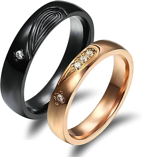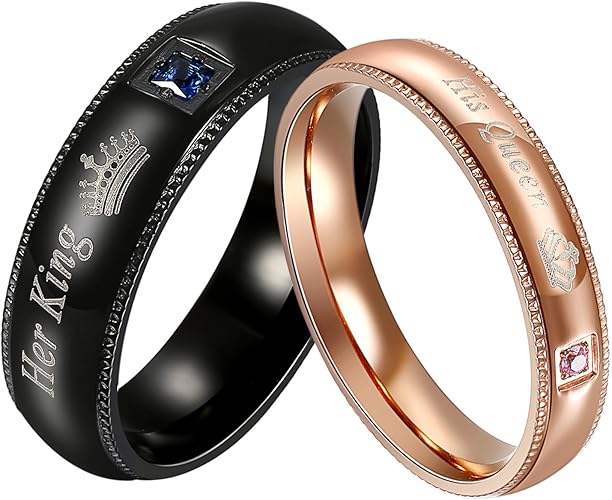 Daesar Paar Ringe Edelstahl Damen Herren Ringe Partnerringe His Queen Her King Zirkonia Eherringe Rosegold Schwarz Trauring Paarringe Damen Gr 45 14 3 Herren Gr 52 16 6 Amazon De Schmuck