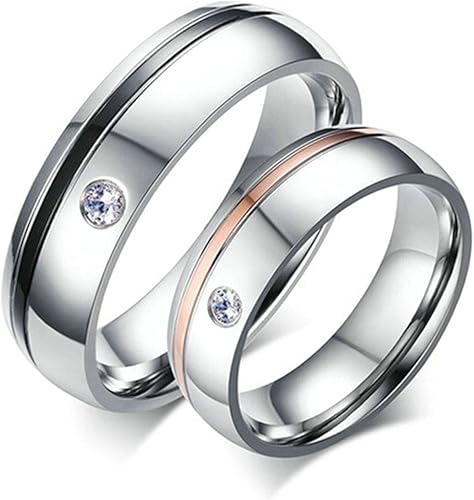 Dolove 1 Paar Ringe Edelstahl Eheringe Trauringe Ringe Silber Ringe Rosegold Schwarz Zirkonia Ringe 6mm Damen 49 15 6 Herren 60 19 1 Amazon De Schmuck