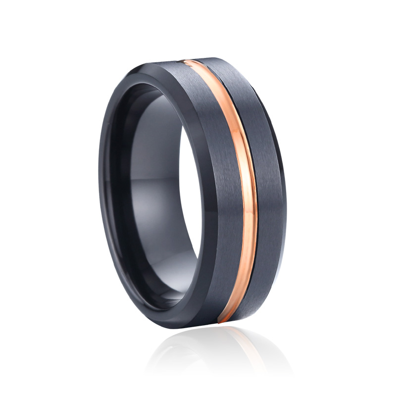 Nuncad Partner Ring Schwarz Rosegold 8mm Aus Wolfram Mit Rosegoldener Rille Matt Design Grosse 52 Bis 72 Amazon De Schmuck