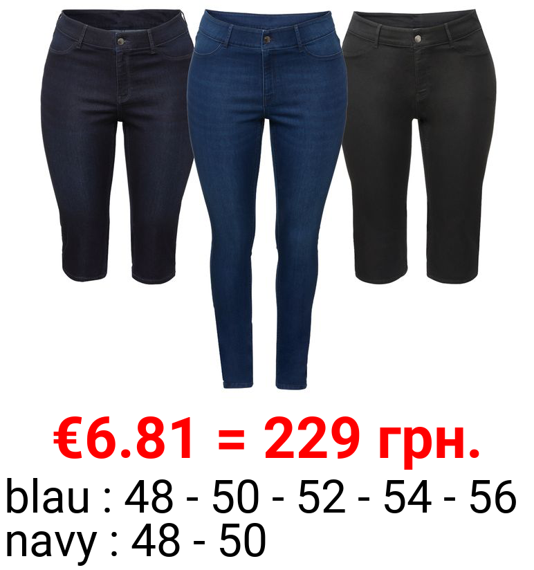 Esmara Damen Capri Jeans Jeggings Mit Bequemem Gummizugbund Plus Size Denim Blau Gr 48 Amazon De Bekleidung
