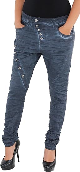 Damen Jeans Malucas Damen Jeans Hose Chino Huftjeans Pump Pluder Baggy Boyfriend Haremshose Omnia Ae